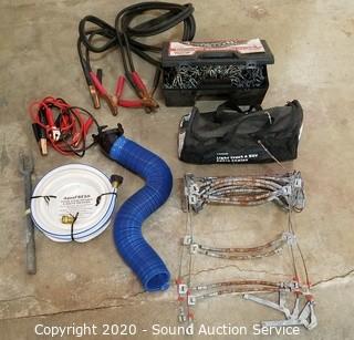 Lot #0218: Tire Chains, Jumper Cables & Hoses