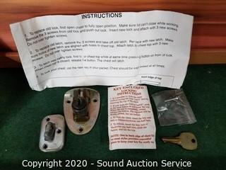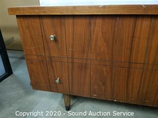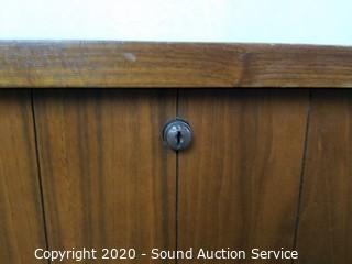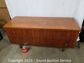 Lot Details: Locking, does come with a key but it is bent can't get it to work, not sure it is the right key. Dated from serial like a lane cedar chest, Serial 469240, 04/29/64. Some wear to finish. Overall good condition. 19.5" H x 43" W x 16.5" D.