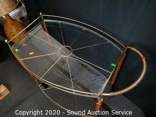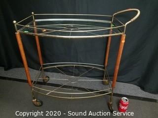 Lot #0030: 2-Tier Glass Top Brass & Wood Tea Cart