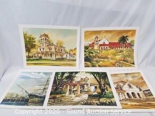 Lot Details: Neyenesch Printers 1969 Standard Oil Company California. Includes "Mission San Antonio de Padua", "Mission San Diego de Alcala", "Bidwell Mansion", "Star of India Maritime Museum" and "Mission San Gabriel Arcangel". Each has information on the back. 18" x 14".