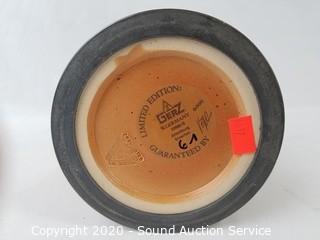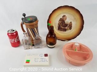 Lot Details: Bowl is by Hankscraft. Includes ceramic letter paperweight, old porcelain plate (has lots of crazing, refer to photos for maker's mark), 1946 bottle and German limited edition Gerz stein.