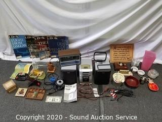Fantastic Large Cedar Country Cabinet / Pantry, Genuine Walnut Veneer MCM Bedroom & Dining Sets, Mid-Century Articulating Teak Wall Sconces, Vtg. Sansui Automatic Direct Drive Turntable P-D20, Receiver, Cassette Deck, Speakers, Signed Native Metal Art Wall Décor, Vtg. Pull-Lever Slot Machines, Antique Pendulum Mantle Clocks, Vtg. Sewing Machines, Vtg. Records, Tons of Artwork, Middle Eastern Décor, Ladies Apparel, Men's & Women's Footwear, New Rugs, Novels, Faux Plants, Shop Workbench & So Much More!!!
