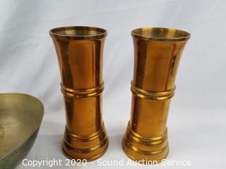 Lot #0045: Brass & Copper Pitcher, Basin & Vases