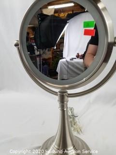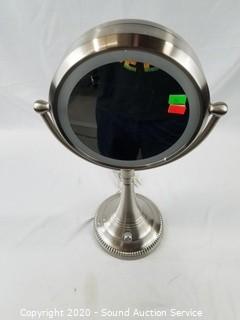 Lot #0070: Brushed Nickel 1X&10X Lighted Vanity Mirror