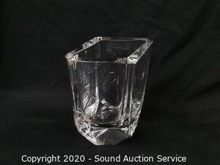 Lot Details: Includes beautiful heavy crystal "Kosta Voda" Vase, decanter, frosted handled basket, pitcher with chiller insert, cheese dish, pitcher with stir stick and 2 crystal dishes.