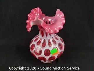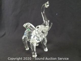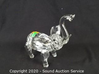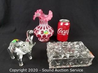 Lot #0113: Crystal Elephant, Covered Dish & Art Glass Vase