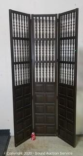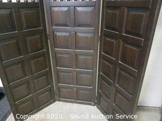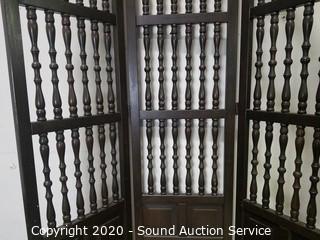 Lot #0023: Dark Stain Spindle 3-Panel Privacy Screen