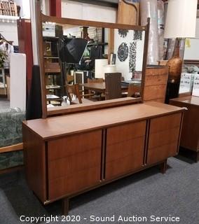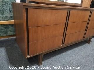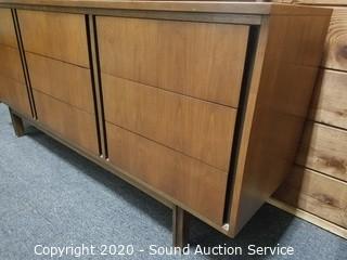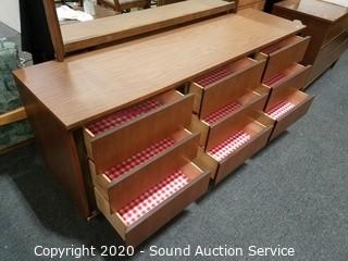 Lot #0006: Genuine Walnut Veneer MCM 9-Drawer Vanity Dresser