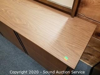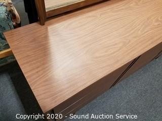 Lot Details: Has a scuff on the bottom left corner, otherwise in excellent condition. Matches the previous lot. 30" H x 66" W x 17.5" D with a 37" H x 51" W mirror.