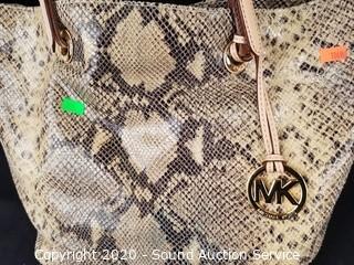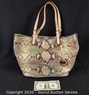 Lot #0299: Michael Kors Snake Skin Print Hand Bag & Clutch
