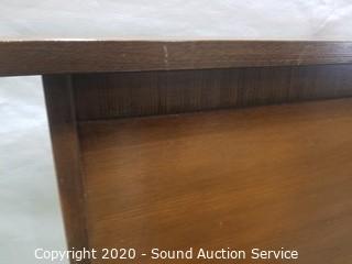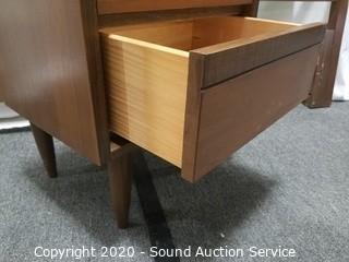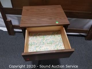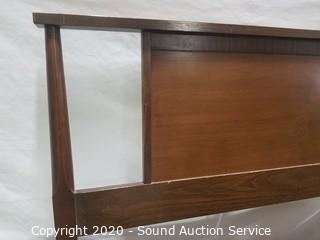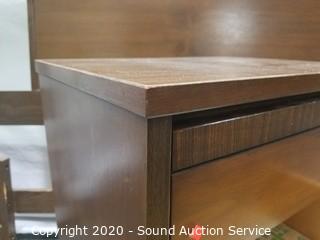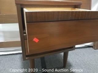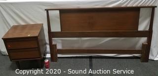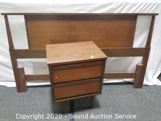 Lot #0009: Mid-Century Walnut Veneer Nightstand & Headboard