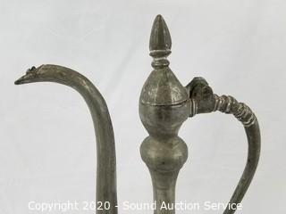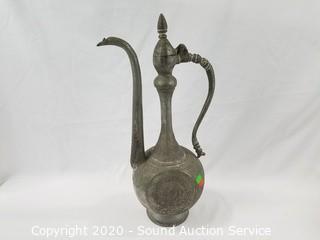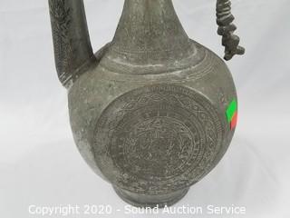 Lot Details: Look to be hand hammered and etched. Do not see any markings. 17" T ewer, 12" diameter basin.