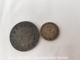 Lot Details: 8-Reales coin is 90% silver, 10 centavo coin is copper-nickel.