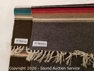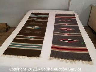 Lot Details: Believe to be by Ortega's Weaving. Both in excellent condition. 20" x 60". 100% wool and hand woven.