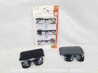 Lot Details: 3 Design Optics full frame ladies fashion, 2 sun readers. All with coordinating cases.