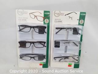 Lot #0181: 6 Design Optics +2.0 Reading Glasses