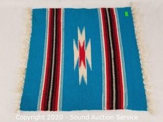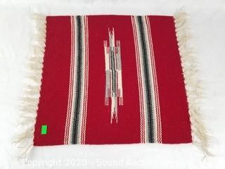Lot Details: One has a stain, otherwise in excellent condition. Believe to be by Ortega's Weaving. 100% wool, hand woven. 15" x 15".
