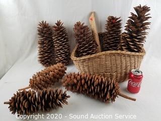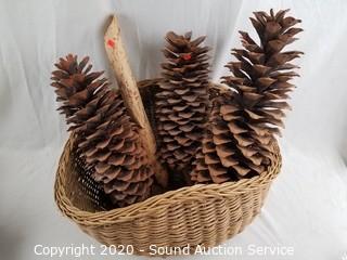 Lot #0113: 8 Large Pinecones & Woven Basket