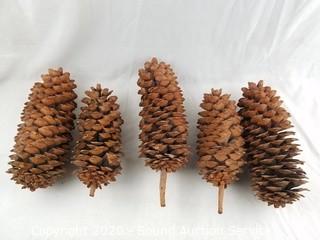 Lot Details: Pinecones are approx. 12" to 16" long, 6" diameter. Basket is 8" x 14" x 18".