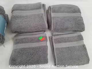 Lot Details: 100% cotton. Includes 4 hand towels and 4 wash cloths. Gray.