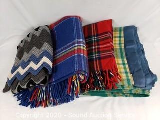 Lot #0304: Afghan Table Runner, Wool Poncho & Blankets
