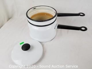 Lot #0090: Cast Iron Dutch Oven & Enamelware Cookware