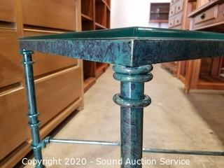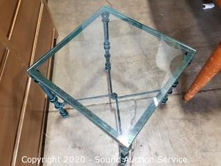 Lot #0023: Green Wrought Iron Glass Top Side Table