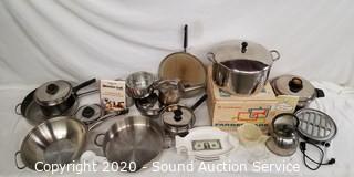 Lot Details: Includes Farberware 12qt boiling pot, Ikea and Basics pots and pans, fish dishes and more.
