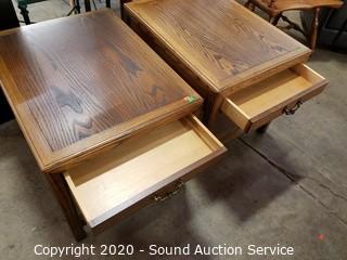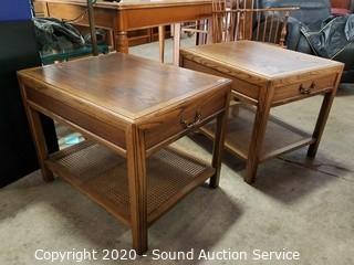 Lot #0026: Pair of Oak Single-Drawer Cane Bottom Side Tables