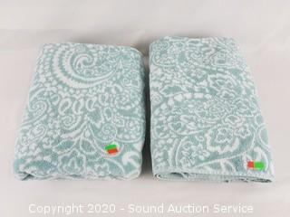 Lot #0275: 2 Ralph Lauren Teal & White Bath Towels