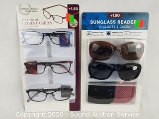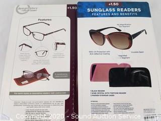 Lot #0254: 3 Design Optics & 2 Sun Readers +1.5