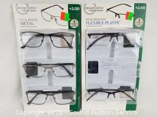 Lot #0252: 5 Design Optics +2.0 Reading Glasses