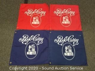 Lot Details: Helmet to the outfit has a very strong urine odor, needs badly cleaned, other pieces smell fine. Comes with various flags.