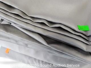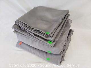Lot Details: Fitted sheet has a few loose threads. Has a perfume/laundry soap smell. 1 flat, 1 fitted and 2 pillow cases. Gray.