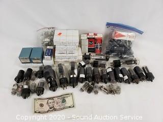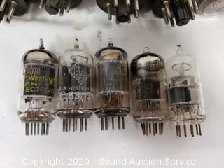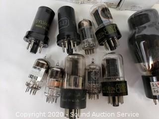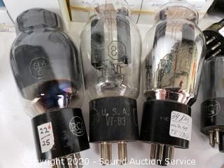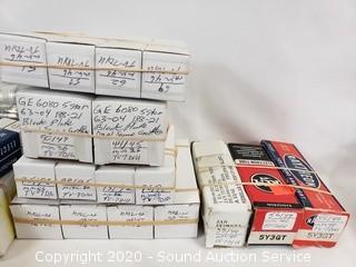 Lot Details: Includes 6V6GT, 6SN7, 5Y3GT, 6C5, 6SJ7, 12AU7, 83, 6080, 8417, ABS6126, ABS6115, 69, 62, 57, 51, 5879, 5Y3GT, 5U4G, 6L6G, 83/12AX7, 417A, 6DJ8/ECC88 and various others.