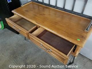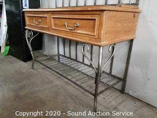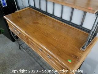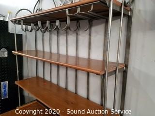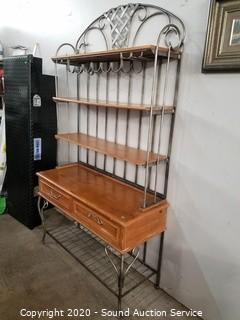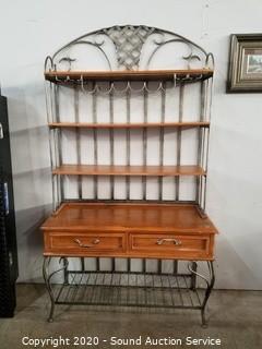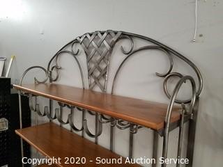 Lot #0011: 2pc Wrought Iron & Pecan Bakers Rack