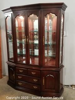 Lot #0002: Beautiful Thomasville Cherry Finish Lighted Hutch