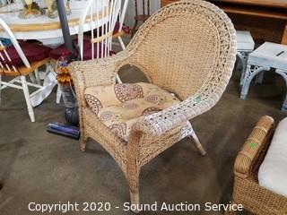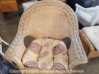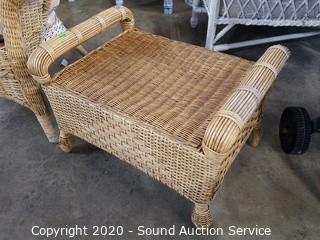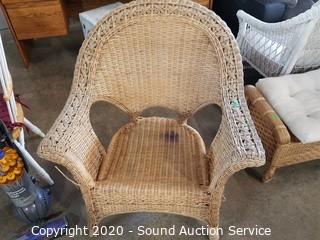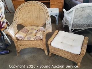 Lot #0023: Wicker Wove Padded Chair & Ottoman