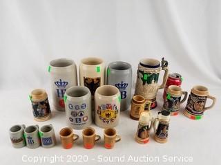 Lot #0346: 17 Miniature & Full Size German Beer Mugs