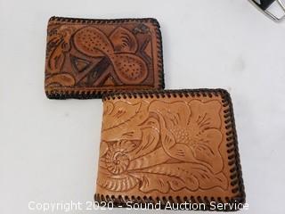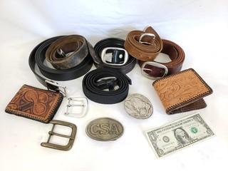 Lot #0300: 2 Tooled Leather Wallets & 6 Leather Belts