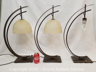 Lot #0009: 3 Bronze Finish Half Moon Table Lamps