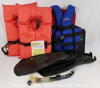 Lot #0272: 3 Life Jackets, Fins & Snorkel