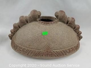 Lot Details: Signed Malek and M.C. Includes a buffalo vase, made in Mexico, unsure what kind of material it is made out of. Smallest is 3.5" x 4", largest is 7" x 14" x 8".