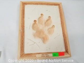 Lot Details: Includes 5 collector's plates, Gray Wolf plaster paw print and 2 wolf photo prints. One is by artist Carol McCutcheon with original price tag of $75, 12" x 10" and 16" x 13". Paw print comes with CoA on the back.