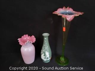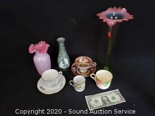 Lot #0313: Art Glass Vases, Fine China Cups & Saucers