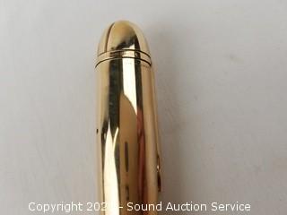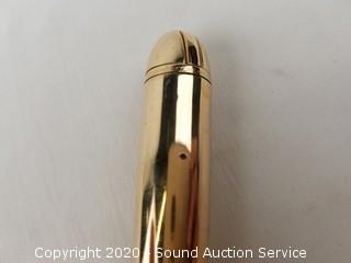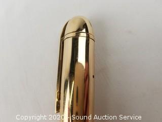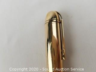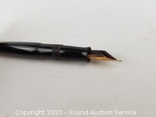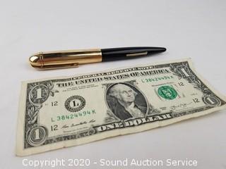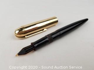 Lot Details: Solid 14k gold cap, gold filled lever and clip, 14k nib, black barrel. 5-1/4" length. c. 1940s, made in USA.