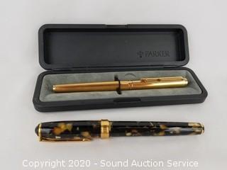 Lot #0065: Golden Parker & Levenger Black/Pearl Fountain Pens