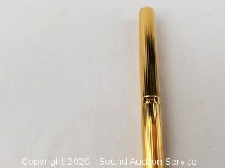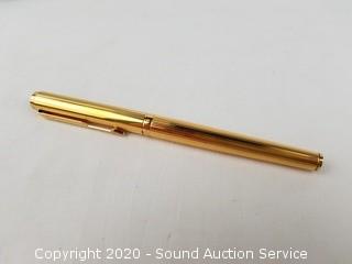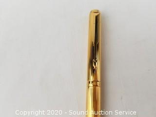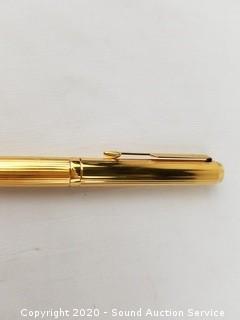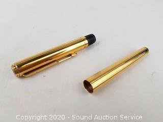 Lot Details: Parker pen is gold toned, broad tip, gold tone nib, in excellent condition with original case. Does not come with a cartridge. 5-3/16" length. Levenger is 5-3/8", gold tone trim and nib.