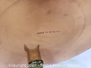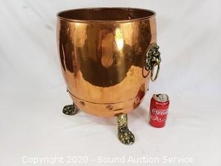 Lot Details: Made in England. With lion head handle accents and claw feet. 16" x 12" diameter. In good condition.