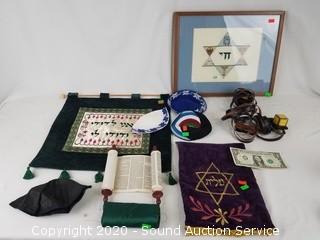 Lot #0176: Hebrew Religious Decor & Kippahs